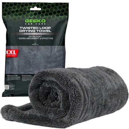Gecko Twisted Loop este un prosop mare, cu doua fete si exceptional de absorbant, conceput pentru uscarea masinilor, creat special pentru cei mai pretentiosi utilizatori. Ca prosop cu doua fete pentru masina, Gecko Twisted Loop ofera eficienta si confort de neegalat atunci cand va uscati vehiculul. Fabricat din microfibra de cea mai inalta calitate, cu o tesatura unica „Twisted Pile” sau fibre rasucite, absoarbe apa cu forta unei tornade, lasand vopseaua fara pete. Datorita greutatii sale mari de 1200 g/m² si dimensiunilor mari de 60x90 cm, acest prosop auto se descurca cu usurinta la uscarea chiar si a celor mai mari suprafete. Fibrele rasucite permit alunecarea lina peste caroserie, minimizand riscul de zgarieturi si asigurand siguranta chiar si pentru cele mai delicate suprafete.